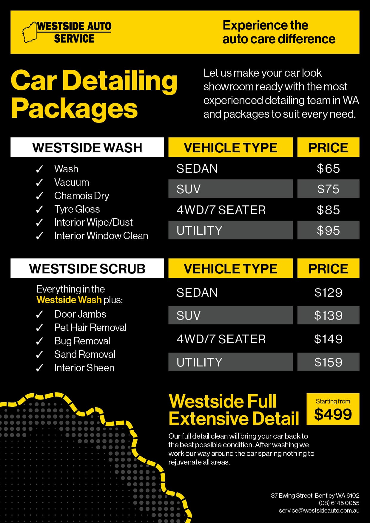 Westside Auto Service goes above and beyond for your vehicle. Our Perth facility proudly offers first-class car detailing services, including exterior wash and interior detail packages.